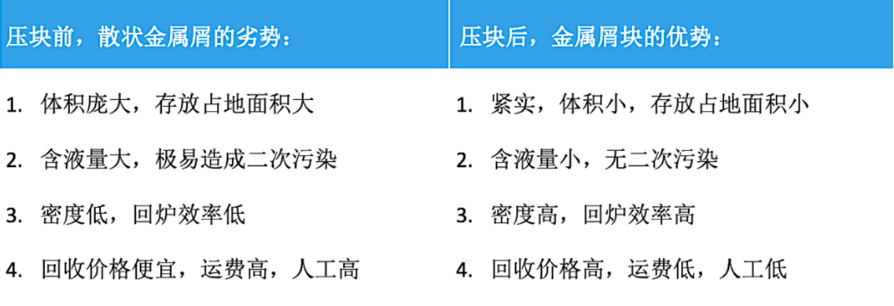 · 30Mpa壓力,壓塊密度高,屑壓縮比大,壓塊后空間利用率高